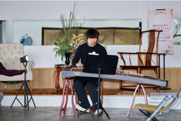 活动期间,主办方还精心安排了精彩的古筝演奏。虞与烜悠扬婉转的琴声绕梁不绝,仿佛将大家带入了一个充满诗意的传统世界,为茶话会增添了浓厚的传统文化韵味。
