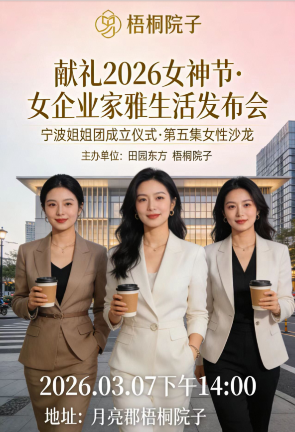 三月甬城,春意正浓。在“三八”国际妇女节即将来临之际,一场以“优雅不设限,活力正当时”为主题的女神节茶话会,于3月7日在宁波江北区梧桐院子温馨启幕。本次活动汇聚了文化、科技、商业等领域的杰出代表,大家齐聚一堂,品香茗、叙情谊、话发展,共同探寻现代女性的品质生活与时代风采。