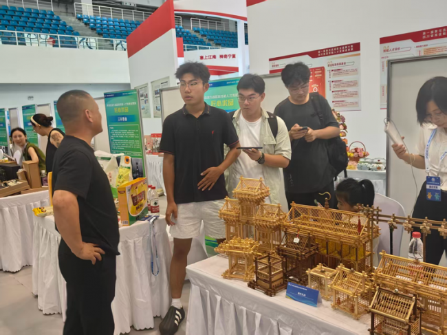 实践队首站到访澄泥泥塑展览现场,在讲解员的细致讲解下,队员们深入了解澄泥泥塑从灵感构思到塑形雕琢的完整创作脉络,真切触摸到这项手艺的艺术精髓。现场,队员们还与讲解员围绕“泥塑造型与校园元素融合”展开深度探讨,构思并提出多个创意设计方案,同时咨询了各方案的实施路径与落地可行性,为澄泥技艺的年轻化创新积累思路。