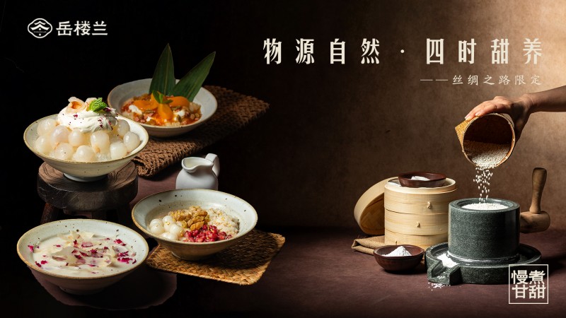 锚定健康国潮,岳楼兰的核心竞争力首先源于文化赋能的国潮表达,让中式糖水成为文化消费的载体。品牌深度绑定“五岳+丝路”双本土文化IP,将中华饮食根基与东西方文明交融的记忆融入产品内核:“岳”取五岳之尊,甄选泰山四年生野百合、衡山子时莲子等地理标志食材,让每一味原料都带着山川的自然禀赋;“楼兰”承丝路明珠,融合天山雪莲蜜、敦煌李广杏等西域风物,打造跨地域的风味碰撞。为让国潮文化可尝、可感、可体验,岳楼兰成立“糖水文明实验室”,复刻《齐民要术》《饮膳正要》中的古籍甜方,签约5位非遗传承人担任“古法监修官”,将广式糖水非遗技艺融入现代制作;同时,以敦煌壁画、五岳山河为灵感设计盛器,非遗瓷盅遇热显现五岳轮廓,定制化包装融入传统纹样,让消费者在品尝糖水的同时,完成一场沉浸式的东方文化体验,实现从“吃甜品”到“品文化”的消费升级。