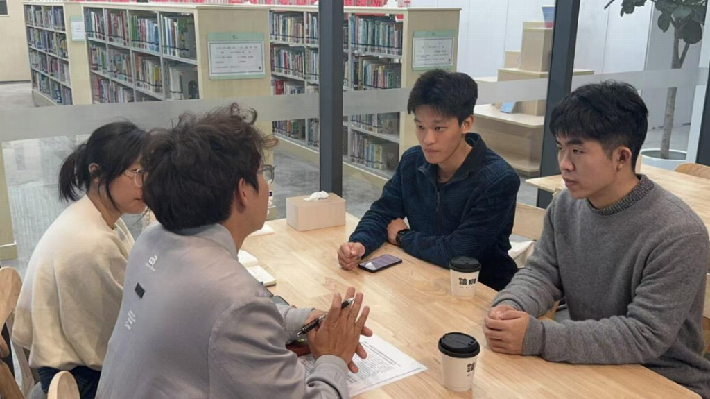 随后,团队奔赴金湾区图书馆,与珠海联港瞰海商务有限公司负责人王旷男展开深入座谈,系统了解当地“不割裂、互赋能”的海洋经济发展理念。这一理念以严格立法筑牢生态保护底线,严守海洋生态红线不突破,再以优良的海洋生态环境反哺渔耕文化传承,通过“海洋牧场+文化体验”的创新融合模式,将养殖产业与疍家民俗、咸水歌表演等文化元素深度绑定,为传统渔耕文明注入现代产业活力,让古老文明在新时代焕发蓬勃生机。座谈中,珠海金湾文旅体育产业发展有限公司的姜彦冰姐姐也全程参与,她语气亲切、条理清晰,结合本地实际案例,为队员们补充解读了金湾区在文旅融合、产业升级中的特色思路,从本土资源挖掘到业态创新落地,层层递进的讲解让大家对当地海洋经济与文化传承的协同发展有了更深刻的认知。