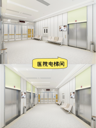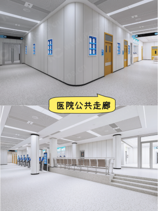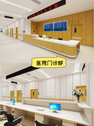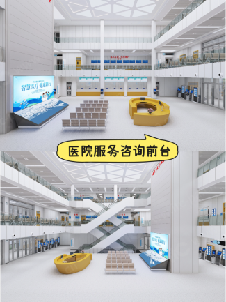 在医院服务咨询前台、公共走廊、电梯间等区域应用itc公共广播、LED显示屏、信息发布、一键报警可视对讲、景观亮化等系统
