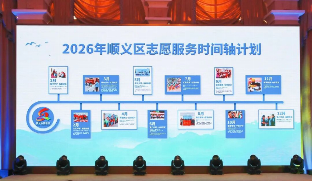 活动中,顺义区发布了2026年志愿服务时间轴计划,这是一张铺满全年的温情地图。从春天的植树护绿,到夏天的暑期托管;从金秋的为老服务,到寒冬的交通安全值守,每一个时间节点都有对应的志愿服务项目。
