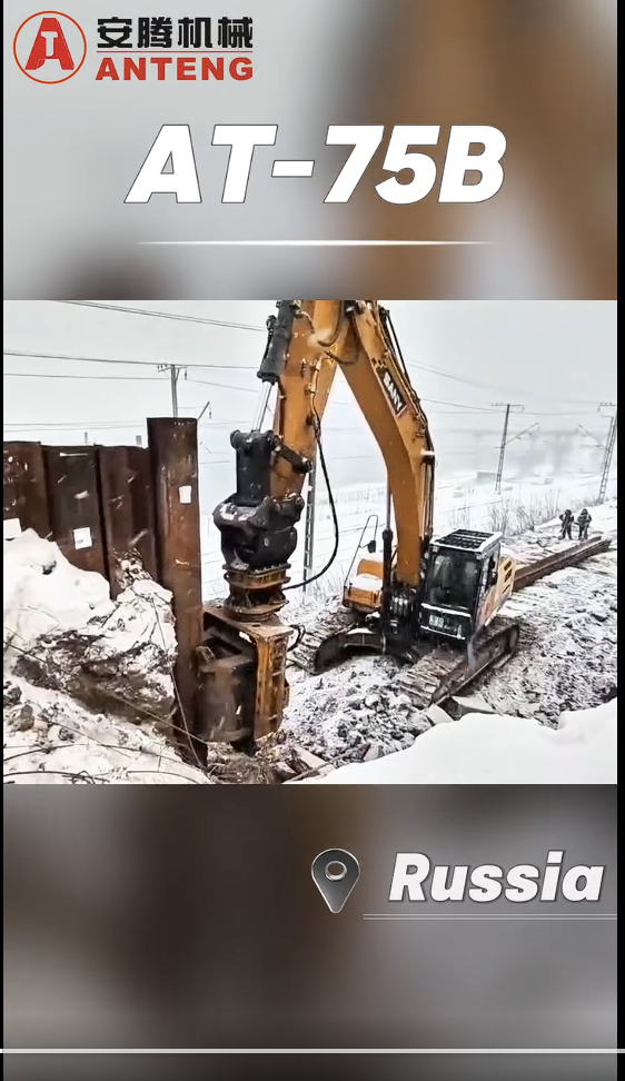 在俄罗斯乌拉尔山脉附近的极寒地带,AT75B液压振动锤展现出卓越的耐候性能与施工稳定性。这款安装于三一重工375H挖掘机上的振动锤,在-25℃的严寒环境中连续作业,以强劲且可靠的表现为当地基础设施项目建设提供了有力保障。