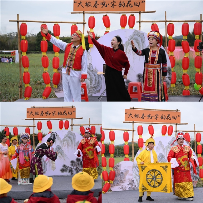 同时,“宋韵花田”的文化IP打造,让大坡镇在差异化竞争中找到了独特标识。唐宋风格竹牌楼、古风灯杆、纱幔亭、诗词吊牌……一系列低成本、高审美的文化符号,让游客在花田间“穿越”千年,感受传统文化与田园风光的和谐共生。这正是“以文塑旅、以旅彰文”理念在基层的生动实践。