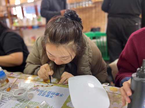 本次活动聚焦非遗文化传承,结合女性审美与兴趣,精心设置了螺钿饰品、仿点翠饰品、掐丝珐琅、宋锦画四大非遗手工体验项目。活动过程中,在非遗导师的现场指导下,女职工们近距离接触非遗技艺,纷纷化身“非遗传承人”,时而专注钻研,时而互帮互助,沉浸式感受中华传统文化的博大精深。
