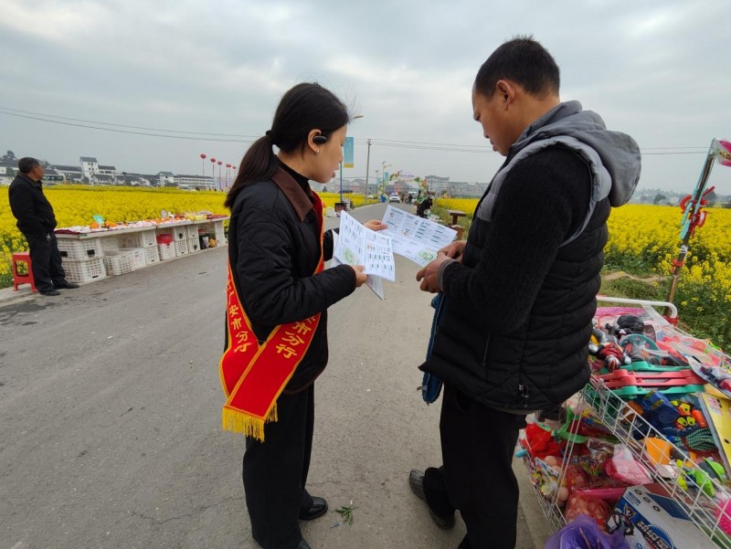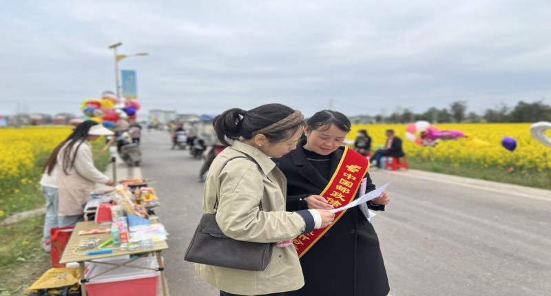 春和景明,暖风吹拂,三月的暖阳驱散寒意,漫山油菜花竞相绽放。3月6日,邮储银行广安分行宣传小队走进花桥镇油菜花基地,以“清朗金融网络 守护安心消费”为主题,面向前来踏青赏景的广大消费者,开展“3·15”金融消费者权益保护户外宣传活动。