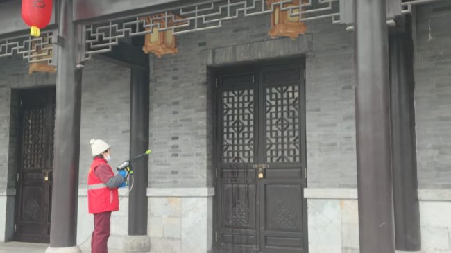 古城街巷中,身着红色志愿服的工作人员正用水枪清洁古建筑门墙,细致的维护工作既保障了文旅环境的整洁,也让古建筑风貌得以长久留存,为游客的文化体验筑牢了服务基础。