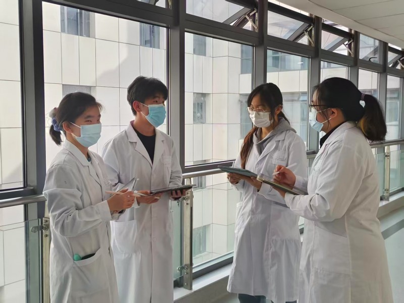 图2:镜探早安团队在昆明医科大学第一附属医院消化内科病房外探讨改进措施