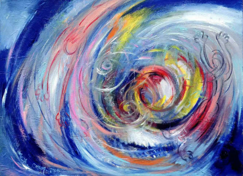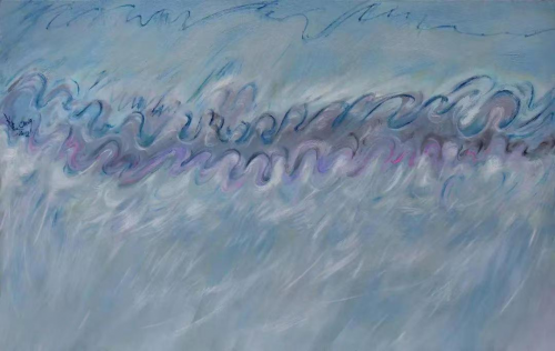 不难看出:画家郑兰美有着以华夏哲学为基础的东方智慧,在《天地之间》这件巨幅作品中有着充分的展示。无须否认思维定见,它有如人的基因,只要定见不演变为固执已见,而是一个支点,就可以撬动整个认知世界。定见绝不排斥不同的认知,反而会促进不同认知的相通。天地之间的互动(画面上笔触的勾连),在抽象中隐喻着具象(母亲和孩子的影像)原本就是人类的共认,何必要人为的去分割。《天地之间》的禅意是张显的,又是通脱的。不能评说的“禅”成为可以表现的“禅”,玄妙的思絮成为可观、可品、可感的具体形象,把人间的美,凝固在画布上,成为真切的实在,把美表现得淋漓至尽,在造形世界中创造出朵朵奇花。可以相信:以完美再完美为艺术求索的画家,以勤谨、智慧的实践准则苛刻自己,一定会完成这个宿愿:完美再完美。