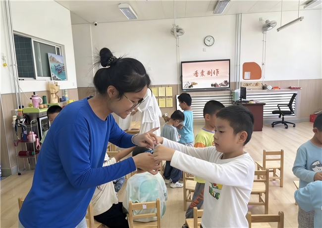 针对幼儿群体,团队走进山东女子学院附属幼儿园,设计了趣味十足的中医药启蒙体验课。孩子们在指导下亲手制作中药香囊,认识艾草、丁香等芳香药材,同时体验温和的小儿推拿手法,在动手实践中感受中医药文化的奇妙,也在潜移默化中种下热爱传统文化、敬畏生命的种子。