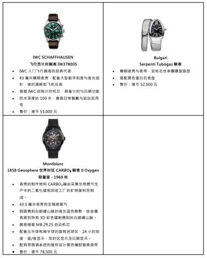 旅客可借此优惠尽情选购时尚腕表及腕表配件,为旅程造型增添时尚格调。参与推广的 9 间国际知名品牌包括:Bulgari、Cartier、Chaumet、IWC SCHAFFHAUSEN、Jaeger-LeCoultre、Montblanc、Panerai、Piaget及Tiffany & Co.。无论您偏爱经典优雅或时尚潮流,总有合适之选满足您的购物需求。立即把握机会,在香港国际机场搜罗至爱,为旅程添上一抹时尚光彩!