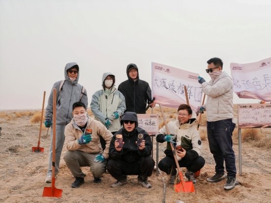阿拉善左旗作为我国北方防沙治沙核心区域,沙化土地面积占比超 70%、年平均降水量不足 200 毫米,植被恢复工作艰巨且漫长,梭梭树作为当地原生固沙树种,主根最深可达 10 米,一棵成年植株每年可固定约 20 平方米流沙,成为荒漠生态修复的核心力量。决色紧扣植树节契机,精准聚焦梭梭树种植,邀请北京合琛、北京爱机、济南鑫晨、石家庄乐詹、沈阳焱燊、山西晋恒大、深圳顺电、河南全音等核心代理商、零售商代表以及品牌媒体挚友代表 柏然、郝金彪、源机话等达人一同参与本次公益行动,在当地林业部门专业指导下,完成挖坑、放苗、培土、踩实、浇水等标准化种植工序。