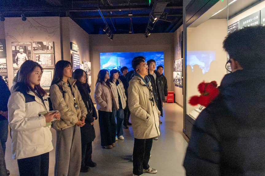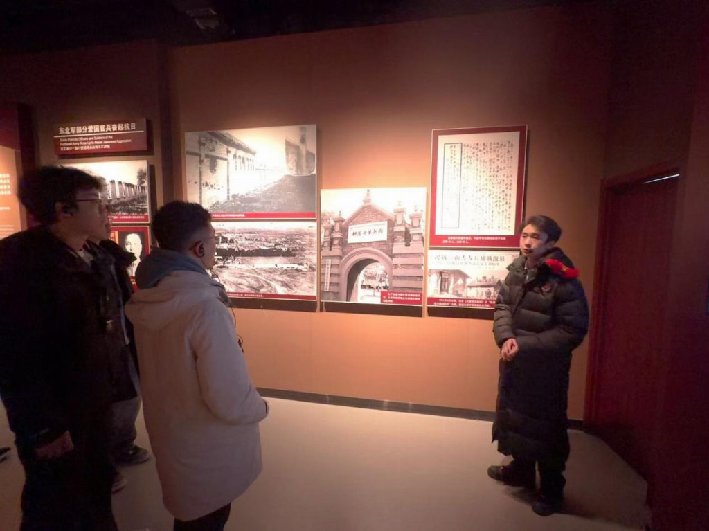 在展馆工作人员的详细讲解下,实践团成员先后参观各专题展区,深刻认识到东北十四年抗战的艰苦卓绝与伟大意义,真切体会到“落后就要挨打”的深刻道理,更加明晰了青年一代肩负的守护国家安宁、推动民族复兴的责任与担当。调研期间,成员们还与展馆工作人员开展访谈,深入探讨红色历史传播、抗战精神传承的有效路径。