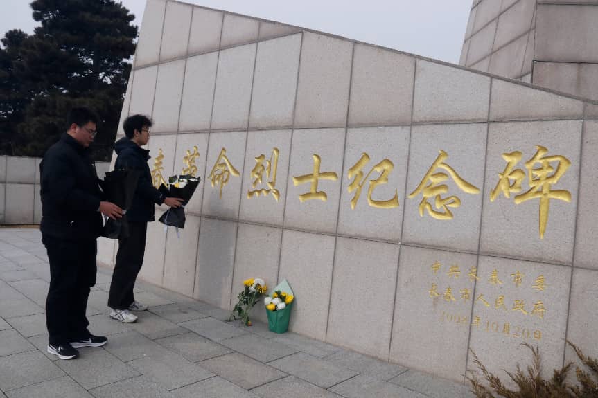 长春市革命烈士陵园作为吉林省、长春市重要的爱国主义教育基地、党史教育基地,承载着缅怀革命先烈、传承革命精神的重要使命,镌刻着革命先辈为民族独立、人民解放、国家富强而奋斗的光辉足迹。实践团首站抵达长春市革命烈士陵园,怀着无比崇敬的心情,向革命先烈敬献花篮、鞠躬致哀,表达对革命先烈的深切缅怀与崇高敬意。