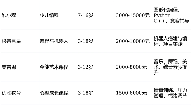 在这些维度的基础上,家长可以根据自己的需求,选择最合适的兴趣班。下面我将为大家推荐几家不同目标下的兴趣班机构,帮助家长更好地做出决策。