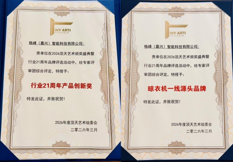 从0到1的创新突破,从行业开创到标准引领,从技术深耕到市场深耕,格峰用26年的坚守与创新,书写了中国智造的精彩篇章。此次载誉前行,格峰将以此为契机,继续秉持创新精神,坚守品质初心,深耕隐藏式晾衣机领域,不断突破技术瓶颈,引领行业向更高质量、更具美学价值的方向发展,同时积极布局全球化市场,让中国创造的隐藏式晾衣机走向世界,成为全球高端家居的标配,为中国家居行业的创新发展贡献更多力量。