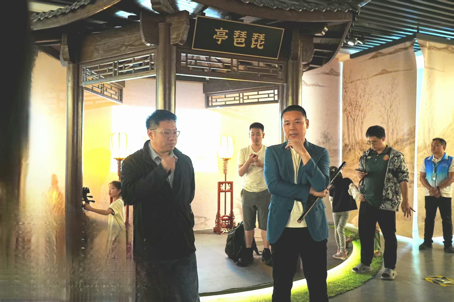 陈圣老师、海洪医生与讲解员们,以轻柔却有力量的引领,带着大家缓缓漫步于丝路乐器展区。偶然间,耳畔音律婉转,那是洞箫在不经意间发声;偶有轻声引导:“你的身体,本就是一件最完整、最精妙的乐器。”在音律接龙、语感互动的轻缓游戏里,紧绷的肩膀慢慢舒展,紧锁的眉头悄悄舒展开来,参与者卸下生活的疲惫与焦虑,放下内心的执念与浮躁,回归最纯粹的感受,在一呼一吸、一音一节间,重新与自己温柔相遇。