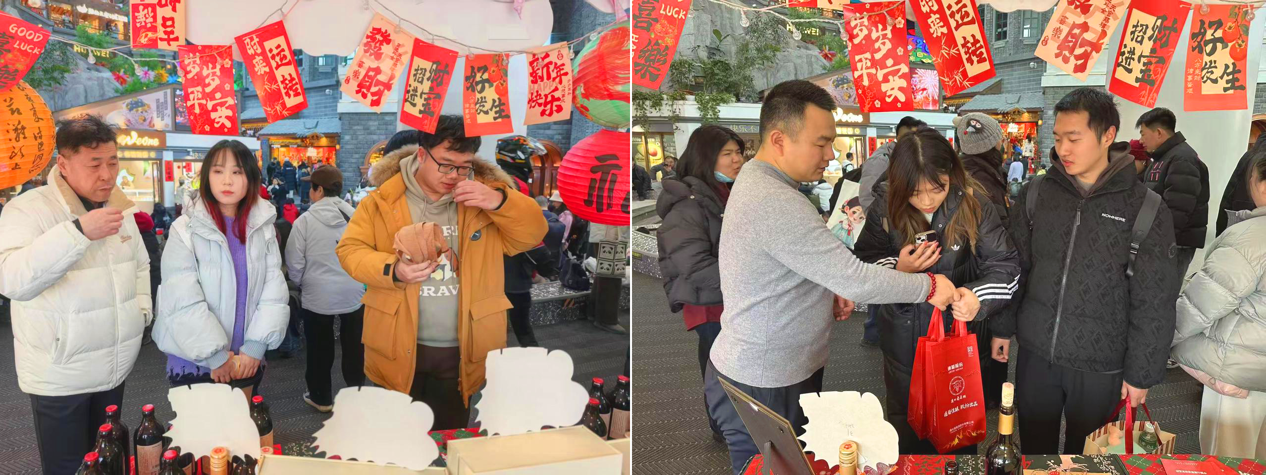 今年春节,通化葡萄酒深度参与了由“这有山”及“商埠地历史文化街区”组织的2026年货大集。在这场充满年味与文化气息的盛事中,通化葡萄酒展位成为了当之无愧的“流量中心”。