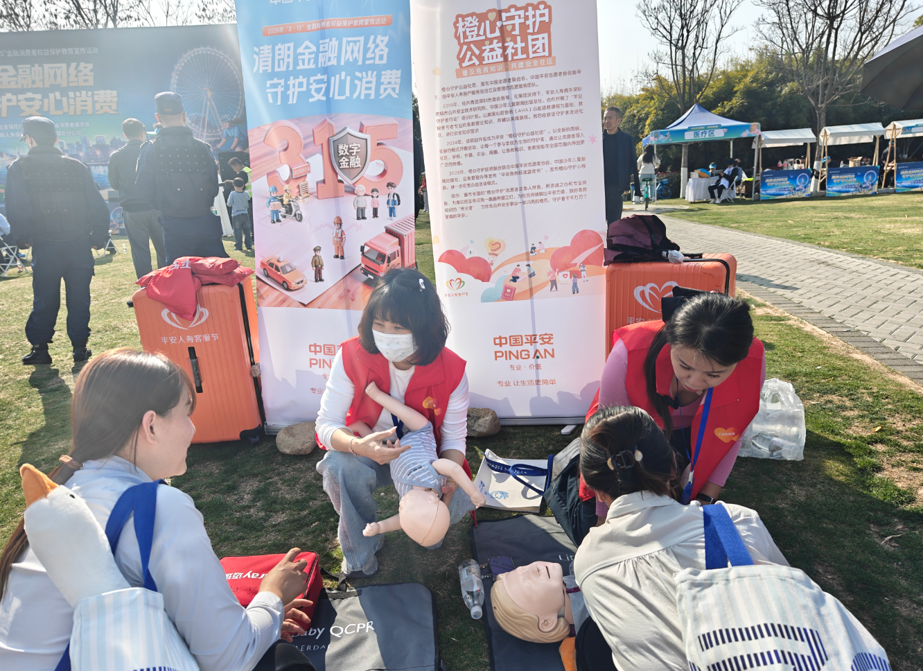 当天,平安人寿湖北分公司“橙心守护”志愿者现场讲解急救知识,吸引市民驻足体验。“这不仅是一场活动,更是一次金融温度的传递。”平安人寿湖北分公司相关负责人表示,“我们希望通过科技+创意的方式,让金融安全知识走出办公室、走进社区、走入生活,真正实现‘金融为民、金融利民、金融惠民’。”