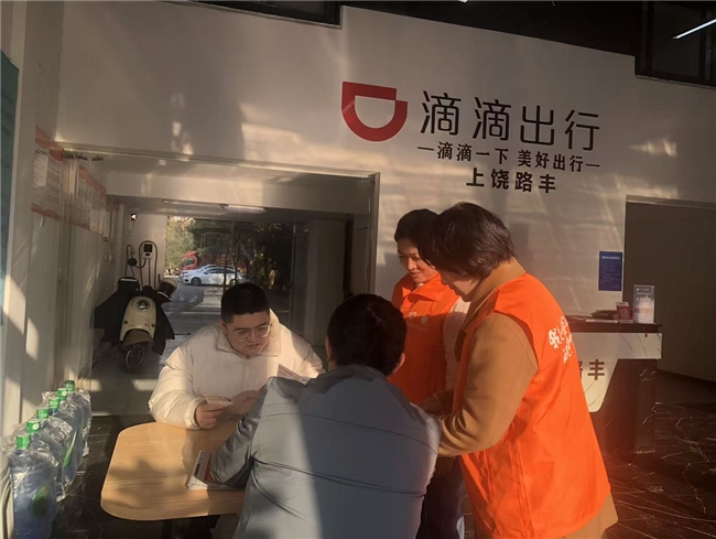 在“滴滴出行”上饶运营点及“美团外卖”站点,志愿者们利用司机、外卖员工作间隙,向他们递上精心制作的宣传折页,结合其日常工作生活中可能遇到的金融场景,耐心讲解作为金融消费者的八项基本权利,并重点提示防范电信网络诈骗、识别非法集资陷阱,提醒他们在辛勤工作的同时,守好自己的“钱袋子”。