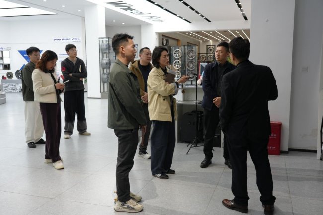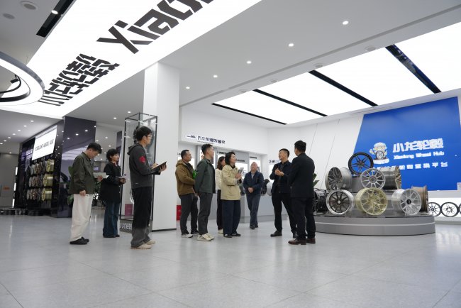 在小龙轮毂智能化服务中心,调研团队一行察看了门店运营、产品展示与智能匹配系统的实际应用,认真听取了小龙轮毂的发展汇报。