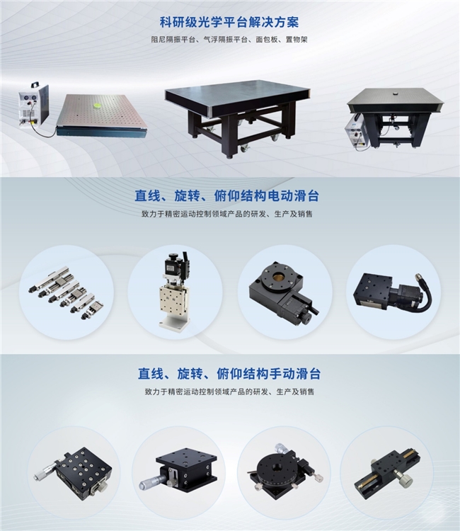 专利技术的高效转化,让三大主力产品系列形成显著差异化优势。光学平台系列中,MBA 铝合金面包板适配教学科研,MBS 不锈钢面包板承载工业重型设备,ZNR 阻尼、QFR 气浮隔振平台依托专利成为纳米级精度场景优选;电动滑台系列集成数字化控制,DAX 平移台等实现微米级位移控制,与自动化产线深度融合提升效率;手动滑台系列经结构优化,在保证稳定性的同时提升性价比,成为科研与产线基础操作 “标配”。