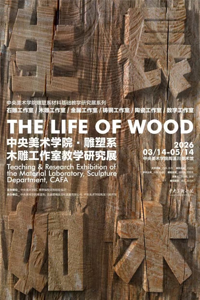 2026年3月14日,由中央美术学院、景德镇陶文旅控股集团主办,中央美术学院雕塑系、景德镇陶邑文化发展有限公司、中央美术学院陶溪川美术馆联合承办的“生长如木—中央美术学院·雕塑系木雕工作室教学研究展”在中央美术学院陶溪川美术馆开幕。
