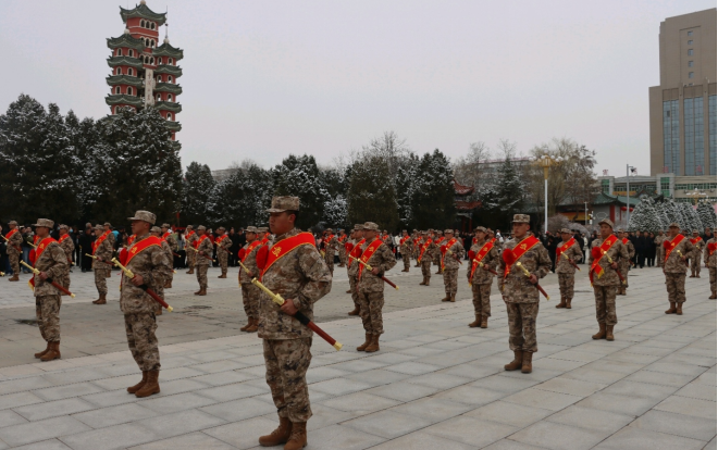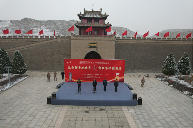 近日,会宁县人武部举行2026年上半年新兵欢送暨戎耀之剑颁发仪式。身披红花、胸戴绶带,新兵们精神抖擞、士气昂扬。与会领导为新兵授剑壮行,勉励大家传承会师圣地红色基因,牢记强军使命,苦练胜战本领,以青春赴使命、以热血卫家国,在军营淬炼成钢、为家乡增光添彩。新兵们纷纷表示,将不负组织培养与家乡期盼,忠诚履职、精武强能,努力成长为新时代合格军人,用实际行动守护山河安宁。(张健)