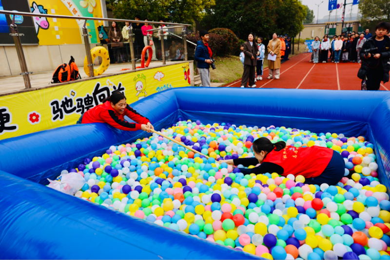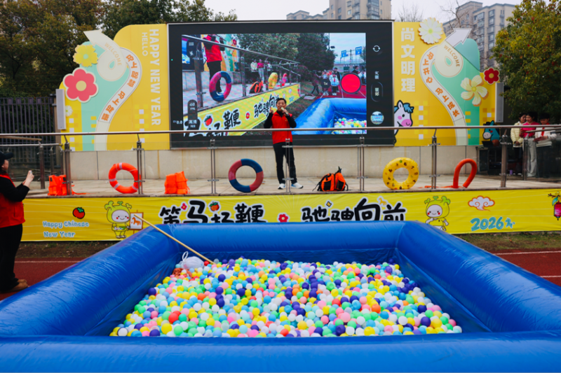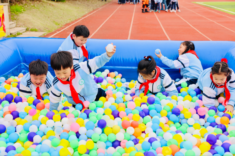 随后,操场化身为安全教育乐园,现场设置了“急流‘泳’退”、“航向未来”、“靶向安全”、“共筑安全”、“书写安全”、“躲避风险”六大体验项目。同学们在志愿者的引导下,通过团队协作,在海洋球池中寻找“安全锦囊”,在“大富翁”游戏中学习救援知识,在合力搭塔、神笔马良、世界球等趣味挑战中巩固防溺水口诀,欢声笑语中,安全理念悄然扎根。