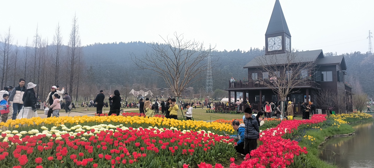 小镇配套休闲娱乐设施完善,郁金香花海、欧式钟楼、风车景观、樱花大道、方芯湖、将军岭徒步路线等景观串联成线,集观光拍照、休闲漫步、生态研学于一体;智慧导览、便捷休憩点位等配套服务齐全,打造集赏花休闲、美食打卡、研学度假于一体的特色文旅目的地。