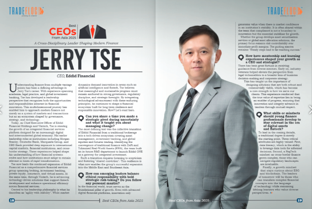 艾德金融行政总裁谢尚礼博士(Dr. Jerry Tse)荣获《TradeFlock》杂志评选为「2025亚洲最佳CEO」。