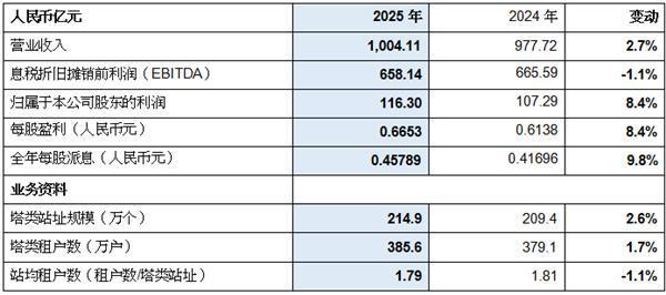 香港 -Media OutReach Newswire- 2026年3月18日 –全球规模最大通信基础设施服务提供商中国铁塔股份有限公司(“中国铁塔”或 “公司”)(股份编号:0788.HK)今天公布截至2025年12月31日止的全年业绩。