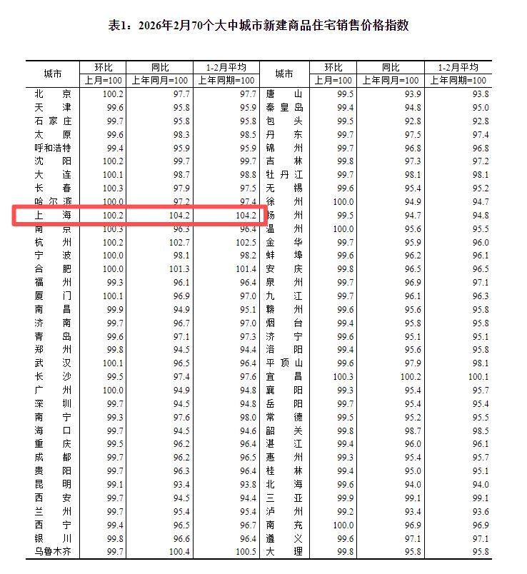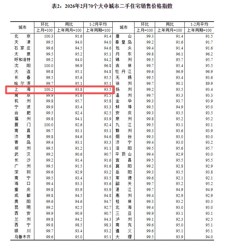 就城市层面而言,2 月份,70 个大中城市中,仅北京、上海 2 个城市的二手住宅价格环比上涨。其中,上海房价环比上涨 0.2%,终结了此前连续 9 个月的下跌。