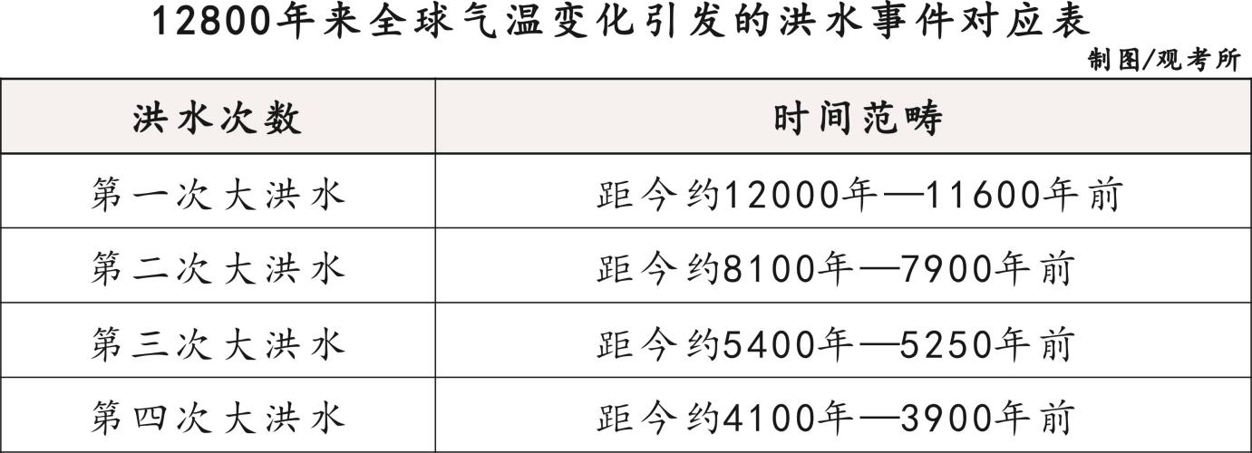 图三:12800年来全球气温变化引发的洪水事件对应表