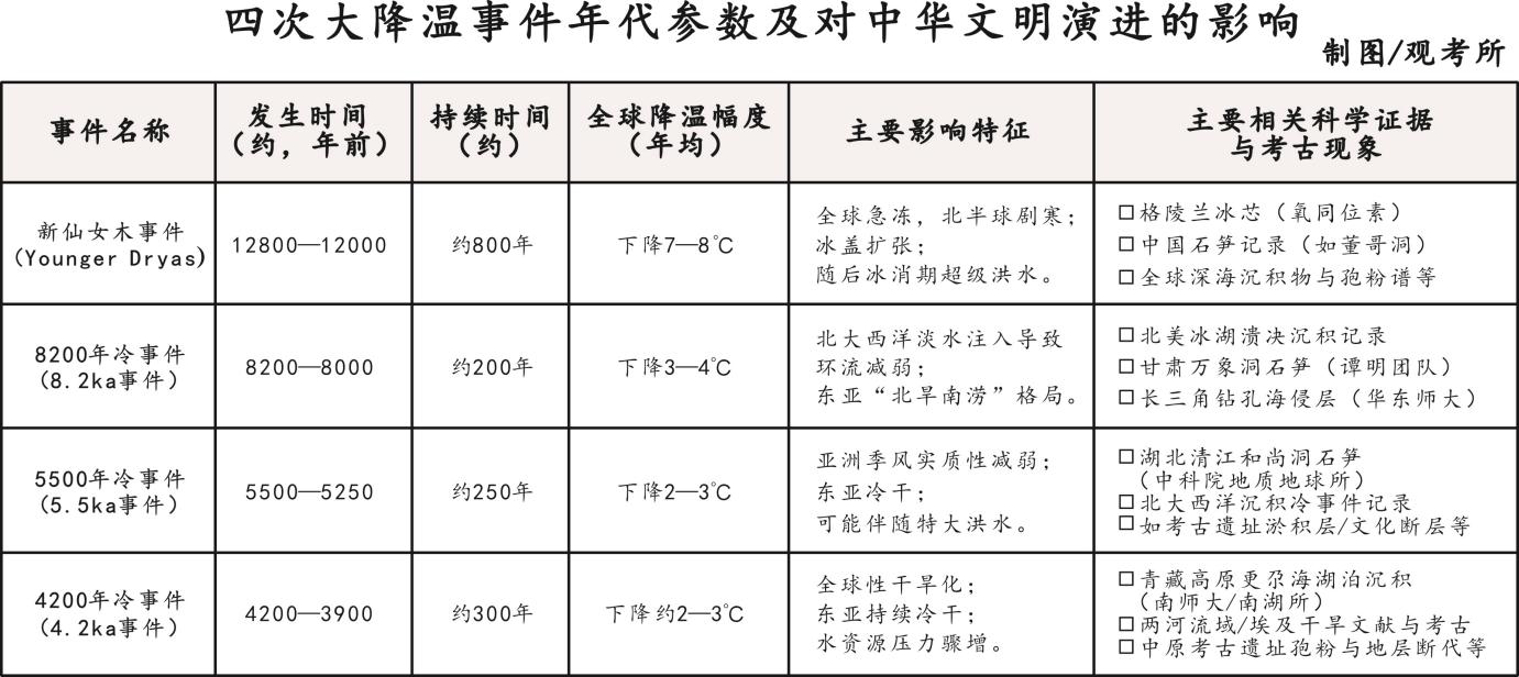 图二:四次大降温事件年代参数及对中华文明演进的影响