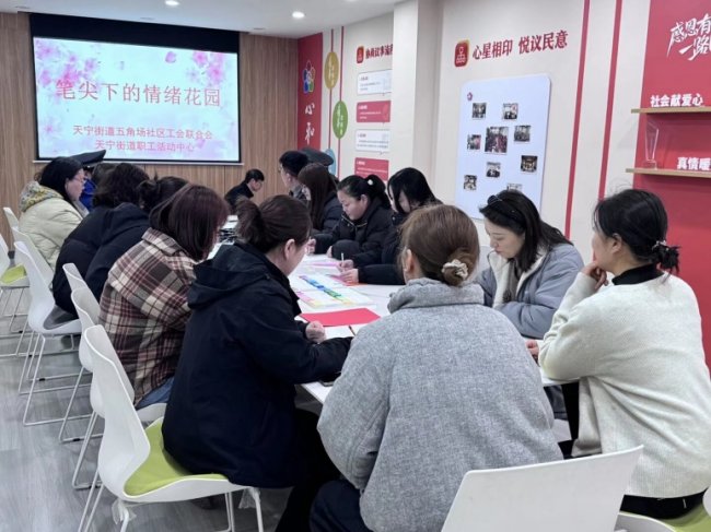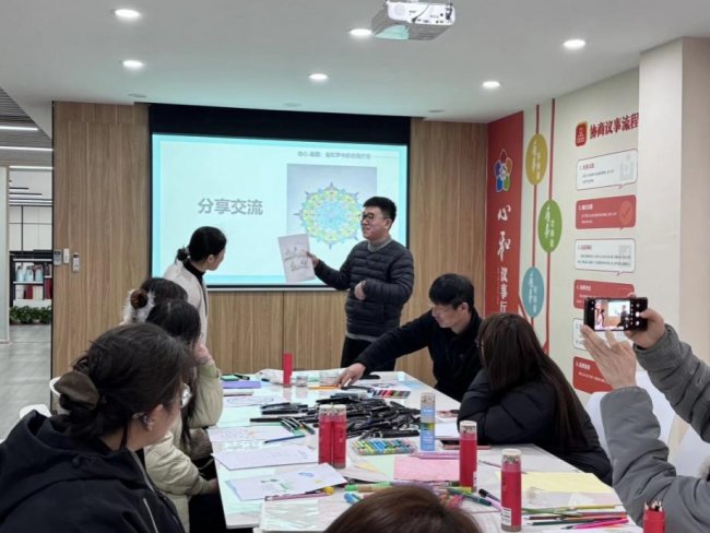 为切实关心关爱社区职工心理健康,3月17日,江苏常州五角场社区工联会特邀绘画心理分析与疗愈师苏老师,开展“笔尖下的情绪花园 绘心·画圆——曼陀罗中的自我疗愈”主题活动,引导职工在一笔一画中与自我深度对话,缓解工作与生活压力,学会自我觉察、情绪调节。活动吸引了社区众多职工参与。