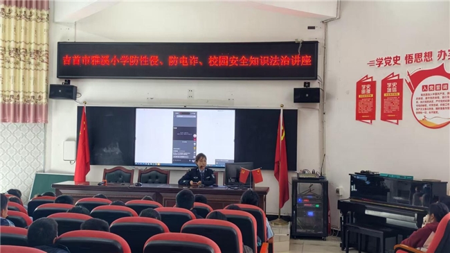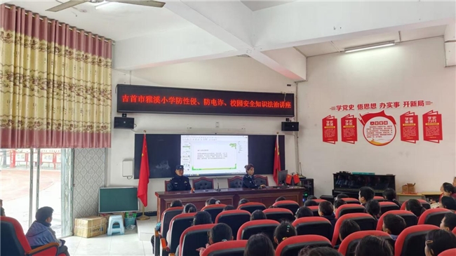 春满雅溪,法润童心。为进一步织密校园安全防护网,厚植学生法治素养,提升自我保护能力,3月18日,吉首市雅溪小学特邀吉首市公安局镇溪派出所屈警官进校园,开展防性侵、防电信诈骗及校园安全专题法治讲座,为全体学生送上一堂生动深刻的“安全法治课”。