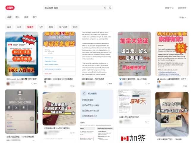 在小红书上,她刷到一个账号,主页写着“加拿大移民律师”“加急催签100%成功”“法院渠道强制审理”。评论区一片好评,有人说“48小时就下签了”。