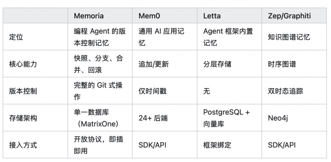 3. Memoria vs 其他记忆方案:核心差异