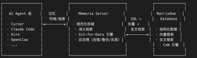 作为业内首个提出"Git for Memory"概念的 Agent 可信记忆框架,Memoria 不仅仅是让 Agent 记住,更是通过底层 MatrixOne 的 Copy-on-Write 技术,让 AI 记忆变得可回溯、可管理、可信赖。