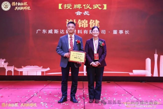广州市德庆商会监事长何略向热心赞助单位授牌