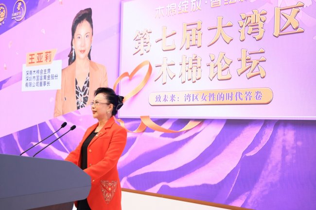深商木棉会主席、国富黄金董事长王亚莉致辞时表示,木棉精神是湾区女性坚韧担当的生动写照,新时代女企业家应勇于担当、深耕创新,既要坚守传统文化根脉,也要主动拥抱新质生产力浪潮,凝聚“她力量”、汇聚“她智慧”,携手为大湾区高质量发展贡献巾帼力量。