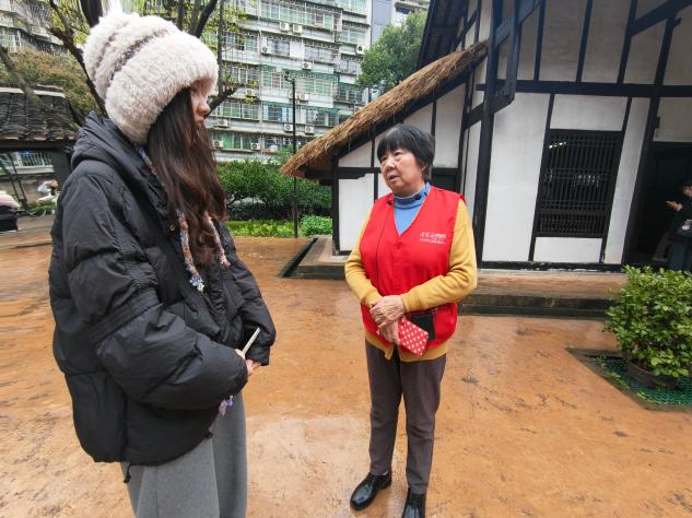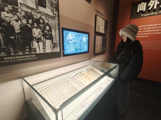 现场实践中,团队分工协作、据实记录,对场馆讲解员进行了专题采访,了解了红色歌谣在当时的传播效果与社会影响。我们还发现,旧址通过屏幕展播、数字影像和互动终端等数字化传播方式,将新民学会故事、革命歌谣片段等红色文化内容通过可视化、可感知的呈现形式,让年轻观众更容易接受和传播,为团队后续开发数字化育人素材积累了实践参考。