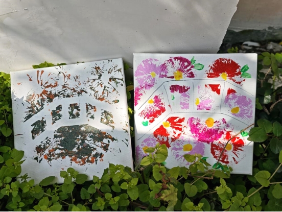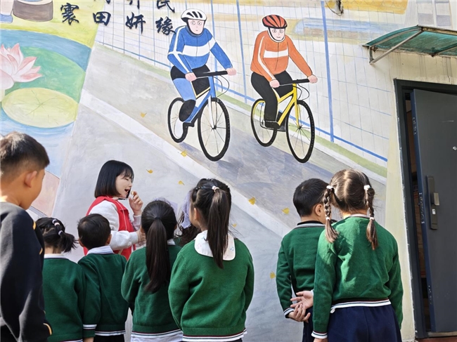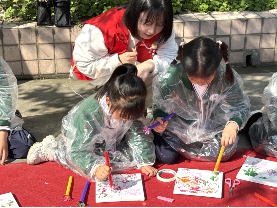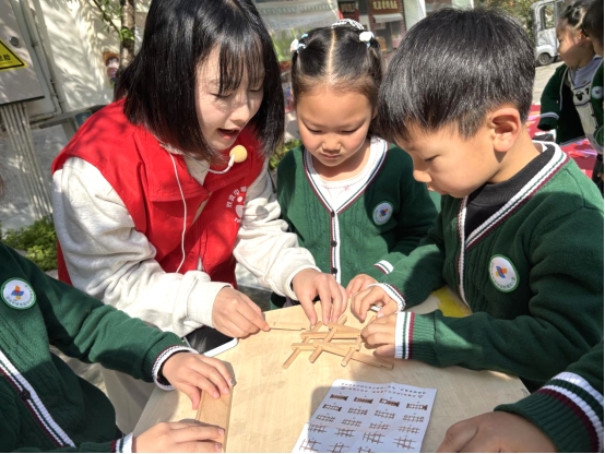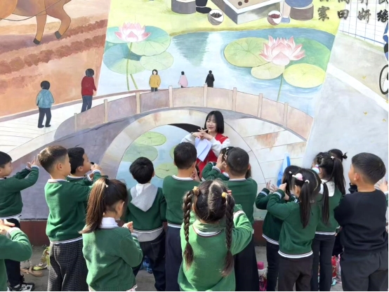 在“清泰文化传播官”橙子姐姐的带领下,孩子们化身为“文化小探员”,漫步在“清泰印象”文化场景之中。橙子姐姐用生动有趣的语言,为孩子们讲述墙绘背后的老故事与社区变迁,并引导大家认识中国传统建筑中的榫卯结构,感受古人的智慧结晶。随后的共绘“清泰桥”环节中,孩子们以创意拓印画的形式,用稚嫩的笔触描绘出“春天的清泰桥”。