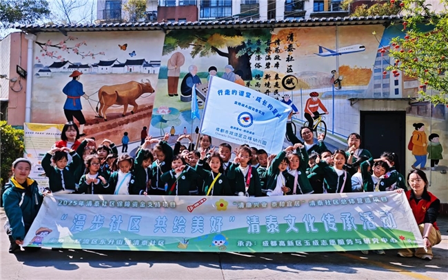 春分时节,万物生发。为强化家校社共育,探索“文化研学+童趣创作”的社区文化传承新模式,助力激活社区集体记忆,2026年3月20日,成都市双流区东升街道清泰社区联合5A级社会组织玉成志愿服务与研究中心开展了“漫步社区 共绘美好”清泰文化传承活动。由成都市双流区立格幼儿园30余名师生代表组成的“清泰文化”研学团参与了此次活动。