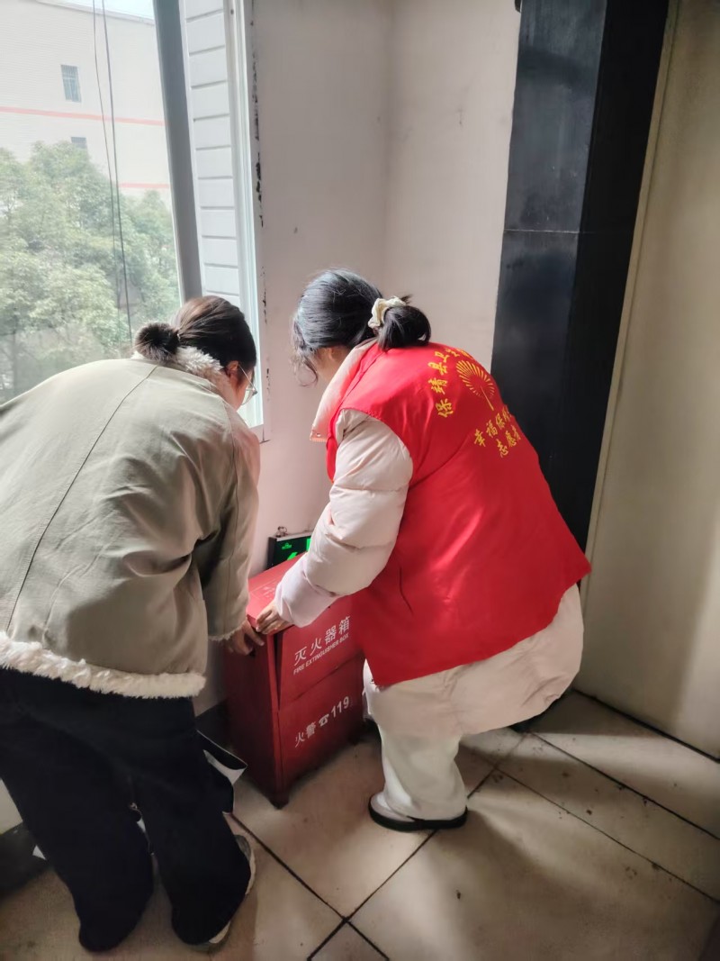 志愿者围绕消防安全、用电用气安全、公共设施安全等重点内容,分组深入书香苑、金域龙湾、王大人坡等区域,逐栋逐层开展“拉网式”排查。