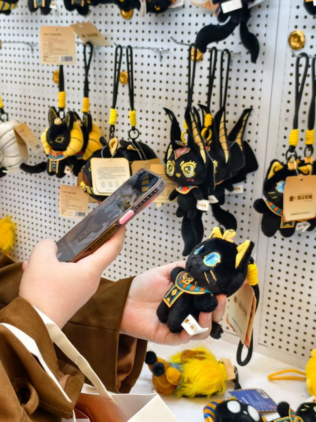 展会现场,零芽之礼展台人气持续攀升,核心展品——埃及奇遇系列IP毛绒产品,成为全场瞩目的焦点。灵感源自古埃及文化的创意设计,打破传统文创产品的刻板印象,将神秘的埃及元素与软萌毛绒质感完美融合,既保留了古埃及众神、象形文字等经典符号的文化底蕴,又通过卡通化萌化设计和细腻手感,贴合了当代年轻消费者的审美与情感需求。以“治愈感”与“文化感”双重优势打动人心。每一款产品都经过精心打磨,从面料甄选到细节缝制,从色彩调试到造型设计,都彰显着零芽之礼对品质的极致追求,不少观展者驻足抚摸、拍照打卡,纷纷表达对产品的喜爱。
