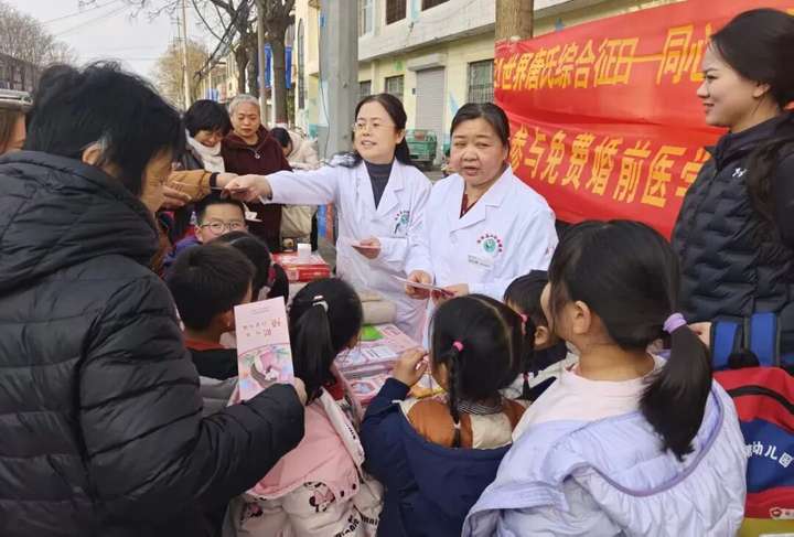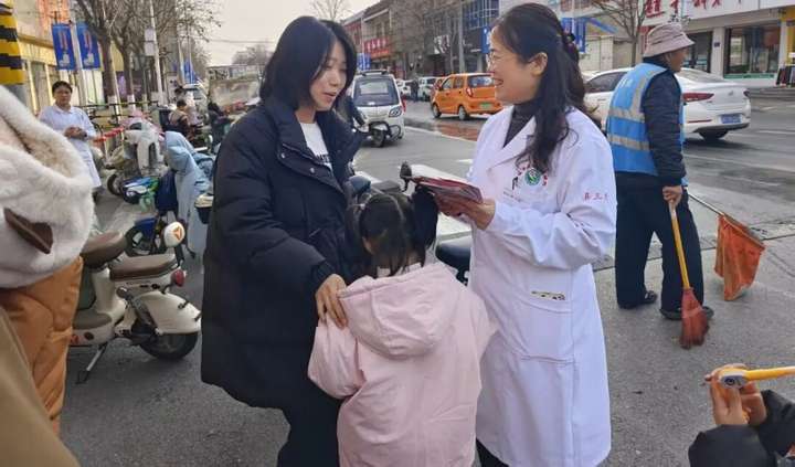 临西县妇幼保健院孕产保健部工作人员于3月19日下午在县直幼儿园门口为广大过往群众及幼儿园家长普及孕前优生、产前基因筛查、孕期保健等指南知识,并发放宣传手册。