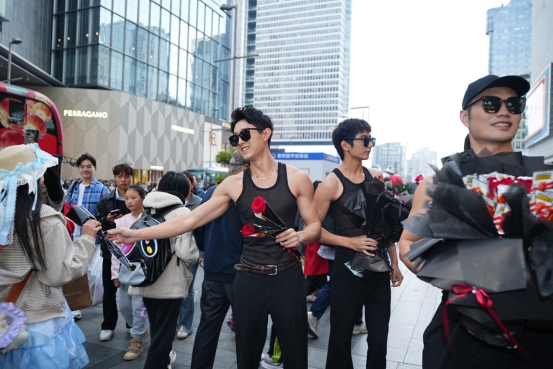 其一,从“买流量”到“造人气”。 当传统广告投放的边际效应持续递减,乡乡嘴选择用“情绪价值”撬动自传播。8位男团成员不仅是派发员,更是内容生产的核心节点——他们与路人的每一次互动,都可能成为一条万赞爆款的素材。